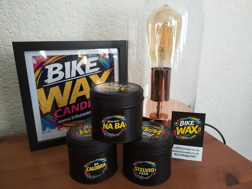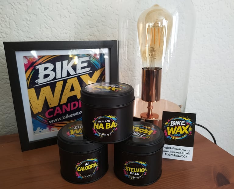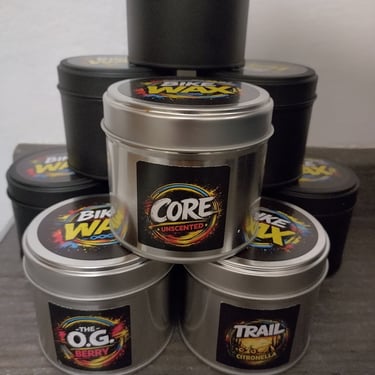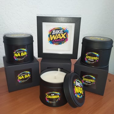 BikeWax also produces hand-poured soy wax candles inspired by cycling and outdoor life.
